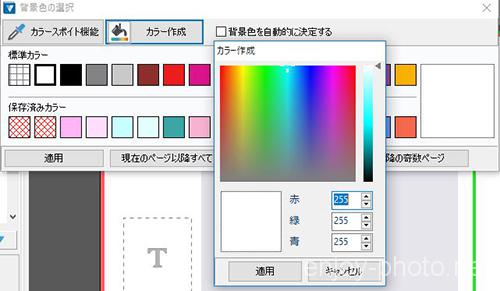 ページの背景(写真を配置したあとの余白の部分)の色をカラーピッカーで自分で自由に調合できるんです。