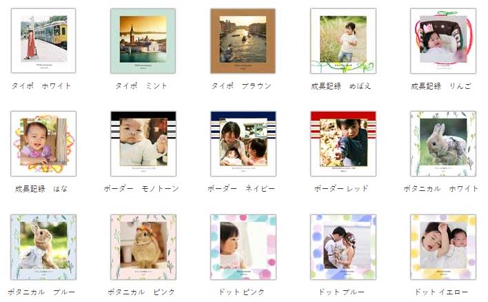表紙デザインは19種類から選ぶことが可能。フォトブックとしてはバリエーションが多いほうだと思う。